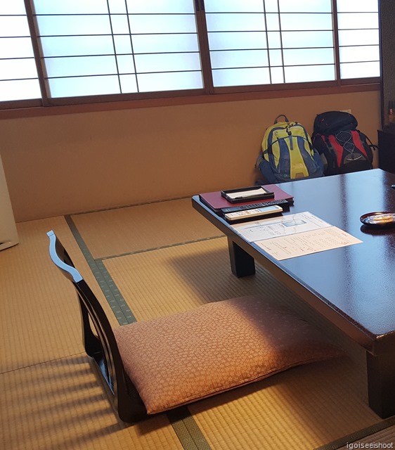 The room was quite spacious, with a separate dressing room and attached bath and toilet. Other amenities included a safe deposit box, TV, expresso coffee machine with two capsules, air-conditioner, heater and Japanese style chairs with backrest and table on the tatami mats.