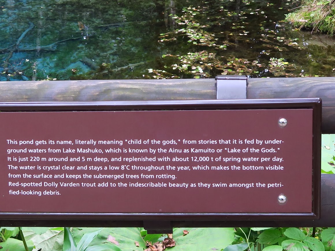 The pond got its name from stories that it is fed by underground waters from Lake Mashu, which is known as Kamuito (Lake of the Gods) by the indigenous Ainu people. Thinking that this beautiful pond must be a gift from the gods, the people who inhabited these lands in the ancient times came to call it "God's Child Pond."