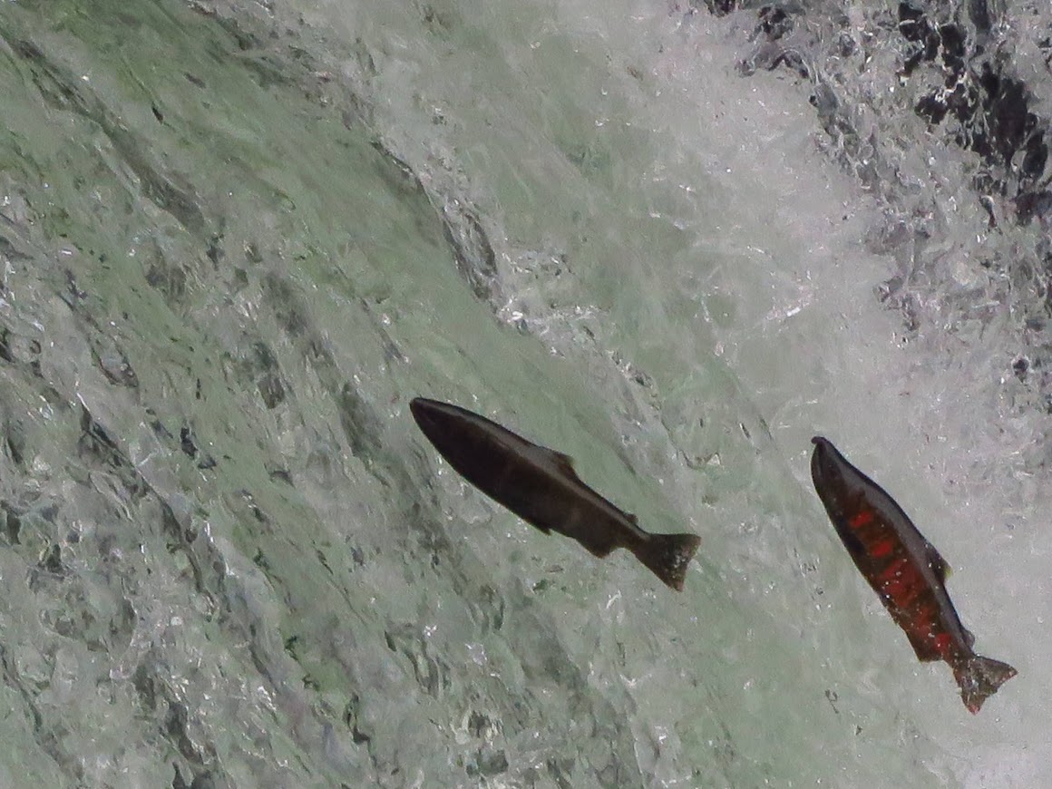 The pond discharges its water down a small stream next to the car park and I could spot more fishes that looked like salmon on this stream.